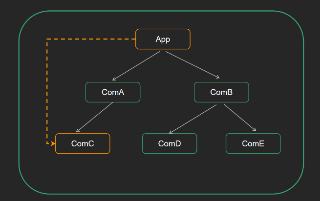 上图是一个react形成的嵌套组件树,如果我们想从App组件向任意一个下层组件传递数据,该怎么办呢?目前我们能采取的方式就是一层一层的props往下传,显然很繁琐。