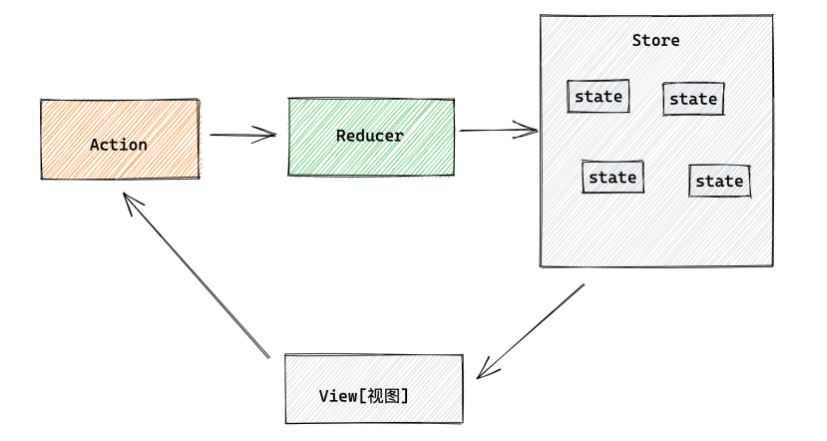 - 通过dispatch函数以action作为参数传入完成数据更新